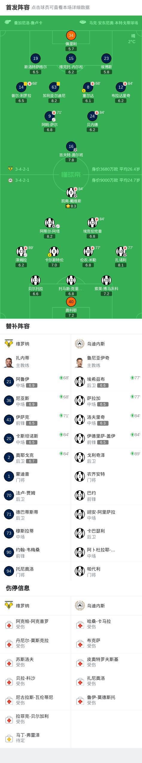 第66分钟,乌迪内斯球员阿蒂尔-阿塔助攻凯南-戴维斯打入一球。